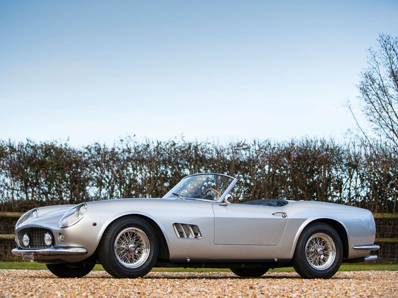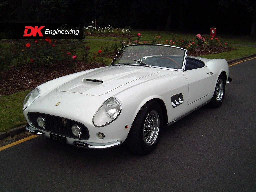 3007 GT : 04/10/1961, 250 GT Spyder California, caisse acier, 26e, châssis Tipo 539/61, moteur Tipo 168/61 n°596E, arbres à cales Tipo 128 C/D à levée de 9mm, taux de compression 9,2 :1, carburateurs 40 DCL6, boîte de vitesses Tipo 539/61, ouïes d’aile, prise d’air de capot, pas de pare-chocs, Bianco MM 10319, intérieur Blu.