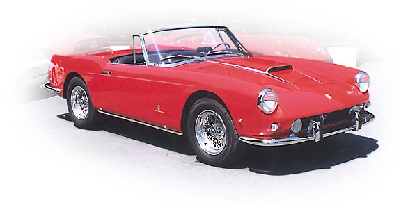 3309 SA : 1962, Cabriolet Pininfarina, dernière SWB, Rosso Metallizzato Speciale Italver (262), cuir ivoire (Avorio 3323), phares sous globe, entourage de passages de roues chromés, baguette latérale chromée, hardtop.