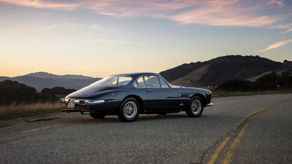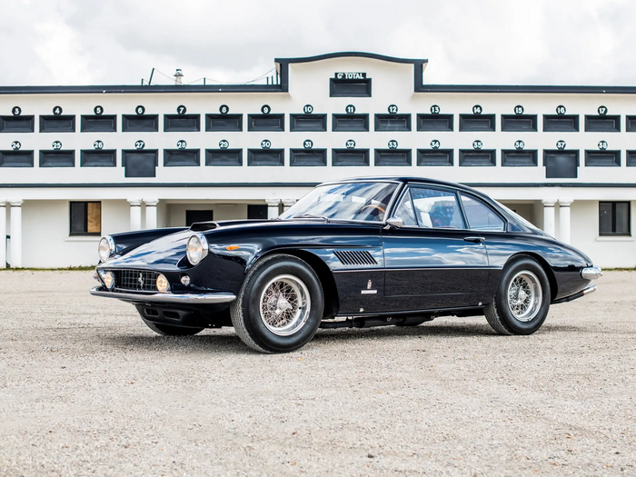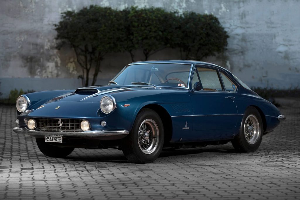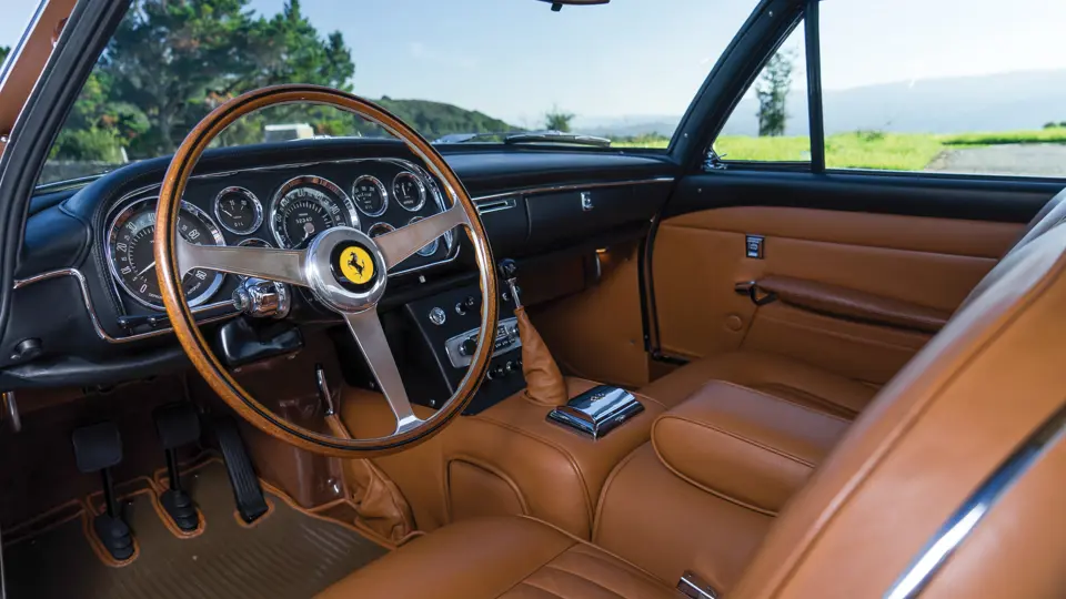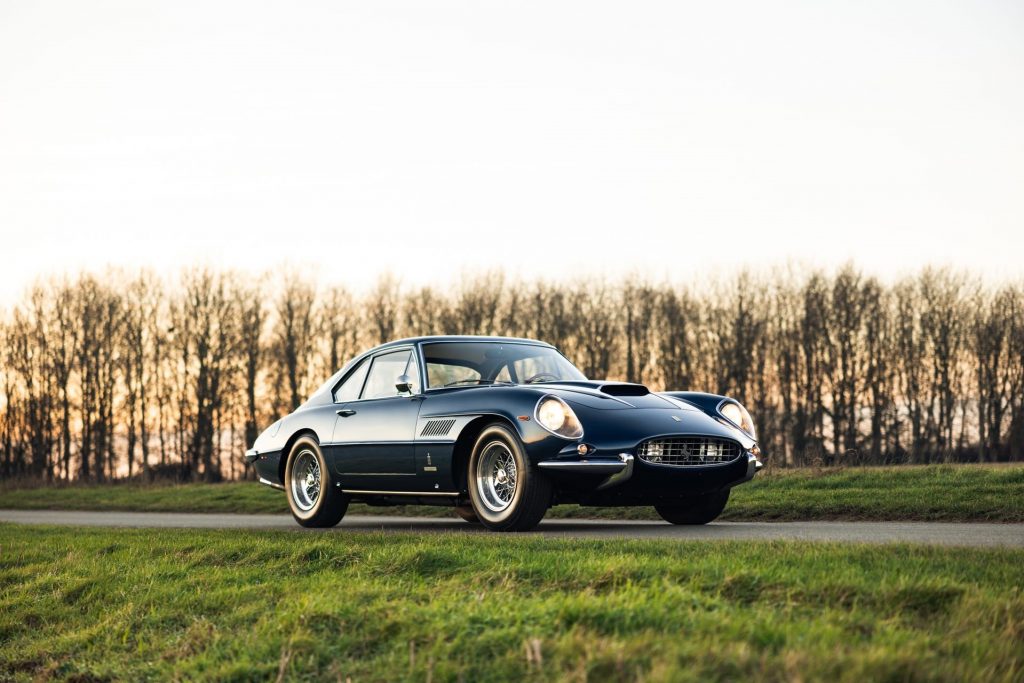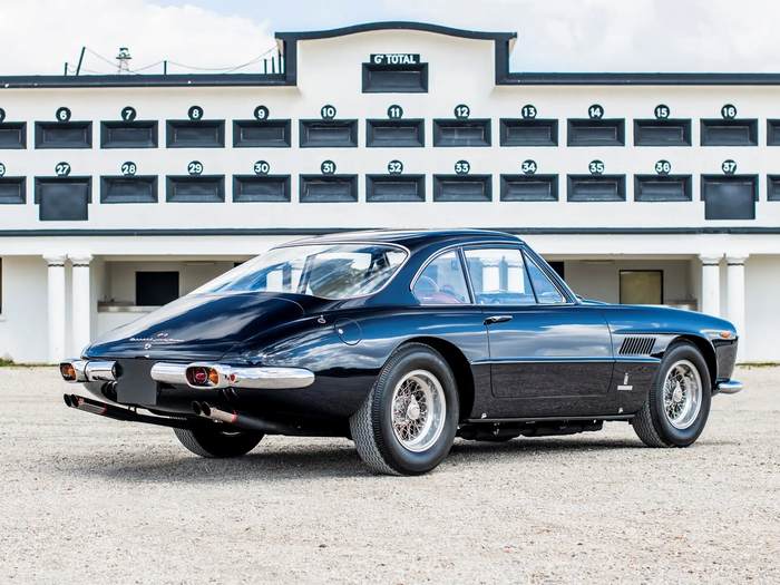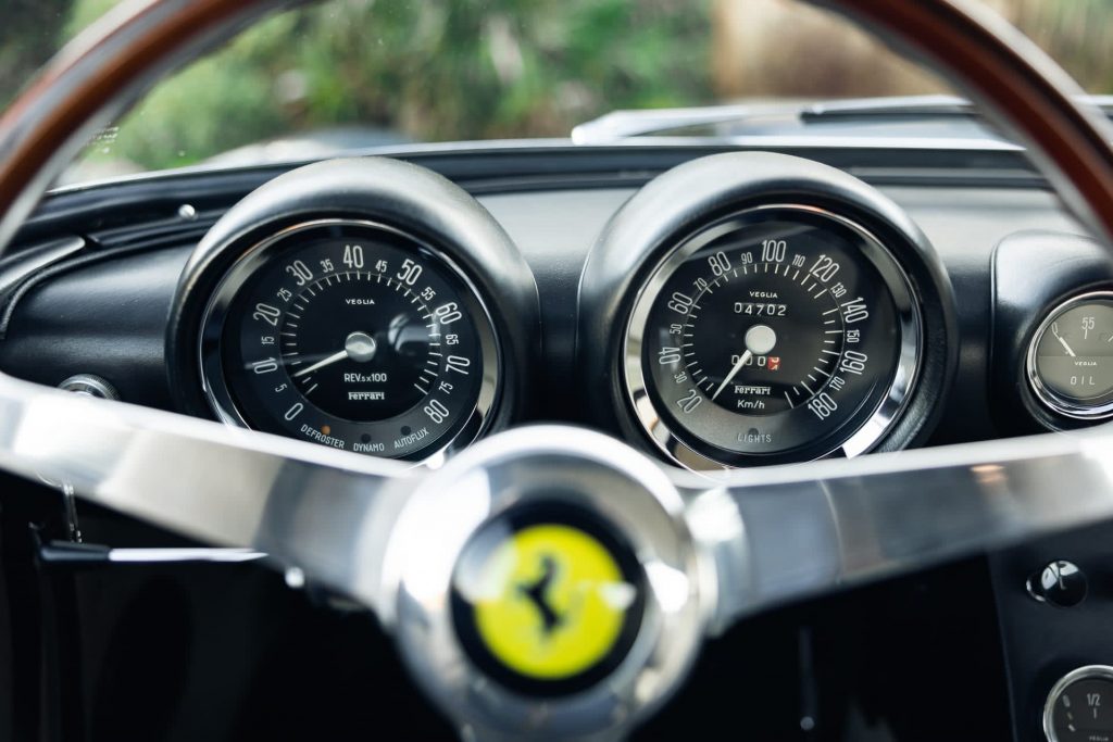 4279 SA : 1963, Coupé par Pinin Farina (caisse 99551, terminée 24/05/1963), phares carénés, Grigio Fumo Italver 20294A, cuir vert Connolly VM 3476, moquettes noires.