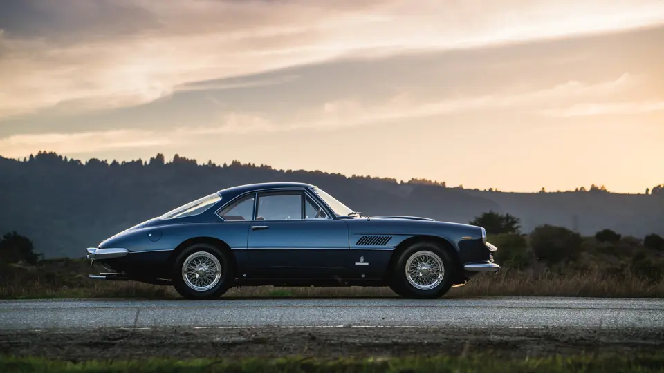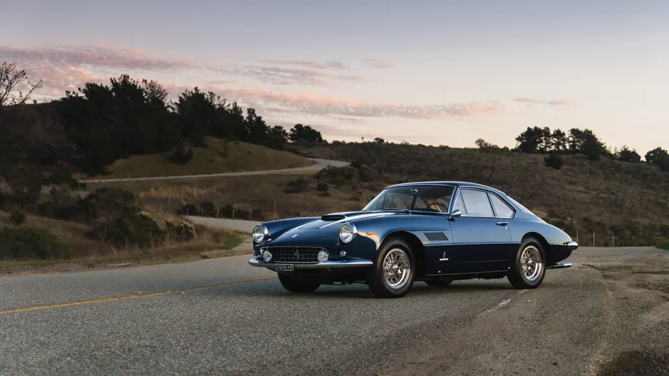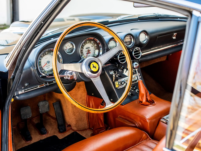 4271 SA : 1963, Coupé par Pinin Farina, phares carénés, jantes à rayons Borrani, Blu Scuro, cuir naturel, moquette bleue.
