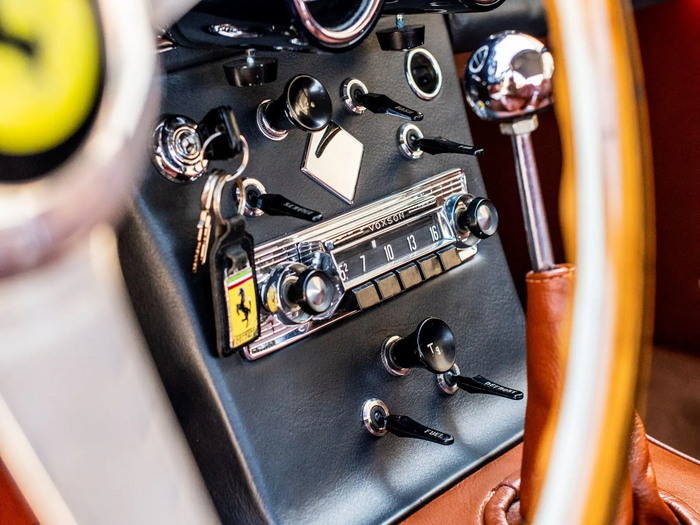 2012 : Vendue, New-York City (USA), via Russo & Steele, Monterey, Calif. (USA). Blu Sera Metallizzato, cuir rouge, moquettes rouges.