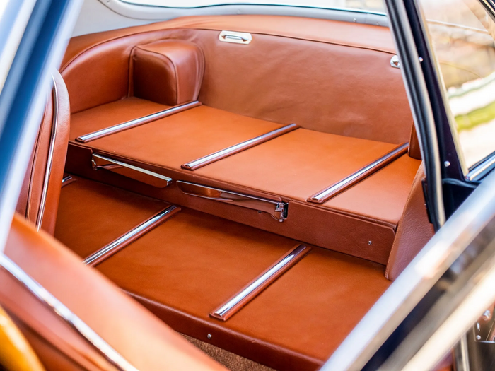 5115 SA : 11/12/1963, S2 (travail PF 98558), phares carénés, Amarante Italver 21 228A, cuir noir Connolly (VM8500), moquette rouge.