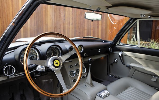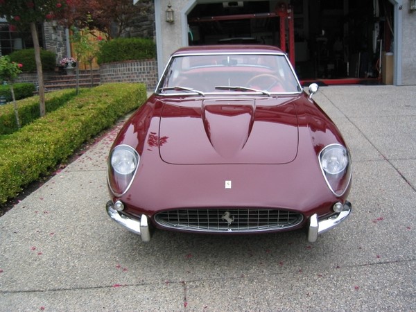 2841 SA : 1961, SWB, Coupé Aerodinamica par Pinin Farina (4e) (caisse 99514, terminée 04/08/1961), phares droits, carburateurs Solex C40 PAAI distributeurs Bosch, Griglio Fumo (MM 17672), cuir Connolly rouge (VM 3171).