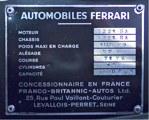 Vendue C.O. Marshall Jr, Toledo, Ohio (USA), via Chinetti Motors, Greenwich, Conn. (USA).