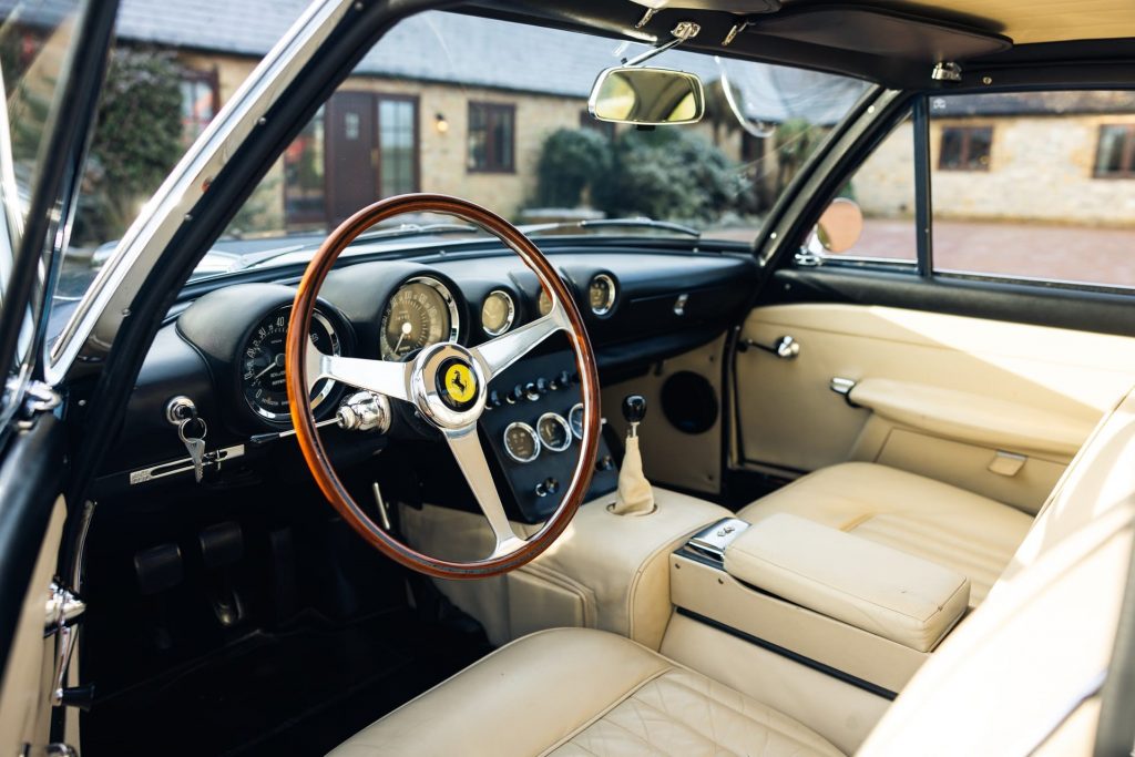 3221 SA : 03/1962, SWB, Coupé Aerodinamica par Pininfarina (caisse 99519, terminée 30/01/1962), moteur 3221 SA, phares carénés, Bianco, cuir Connolly Grigio