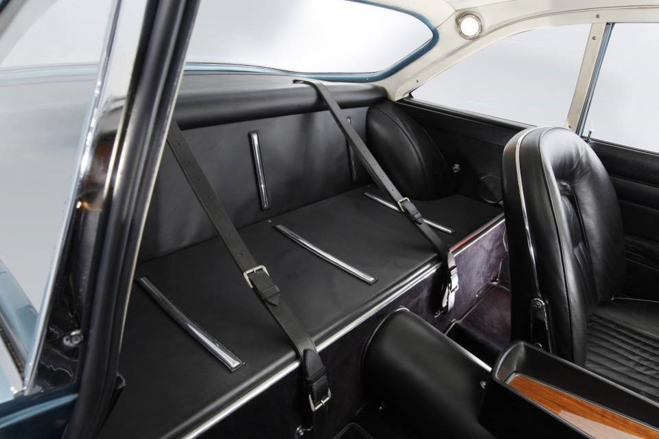 Plage arrière avec sangles en cuir pour l’arrimage des bagages.