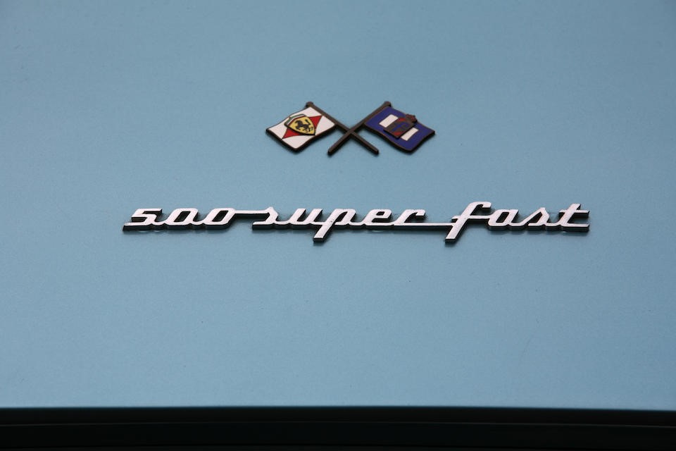 La ligne est reprise de l’Aerodinamico étudiée par Pininfarina (Aldo Brovarone) et modifiée à l’avant (phares droits et calandre ovale) et à l’arrière tronqué selon un profil de Kamm pour des raisons esthétiques, aérodynamiques et pratiques (pour avoir un coffre plus vaste). La voiture est équipée de 3 feux ronds à l’arrière propres au modèle. La 500 SF est entièrement réalisée et finie à la main chez Pininfarina dans l’usine de Turin-Grugliasco (ITA). La carrosserie est formée en acier avec des ouvrants en aluminium puis expédiée à Maranello pour montage des organes mécaniques et retourne enfin à Turin pour finition, essai routier et vérification de la qualité de montage (absence de sifflements aérodynamiques et de bruits parasites).