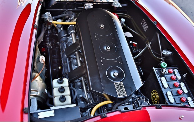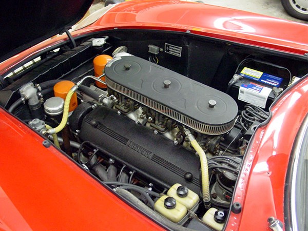 3285,71 cm3 (course de 77mm au lieu de 73 pour la 250 GT, alésage 58,8), la course atteint désormais sa valeur maximale pour ce bloc avec une distance entre 2 pistons voisins de 17mm. Taux de compression 9,2 :1.