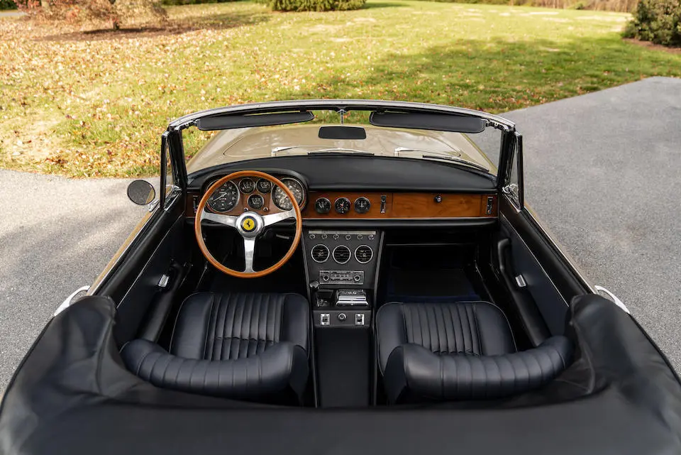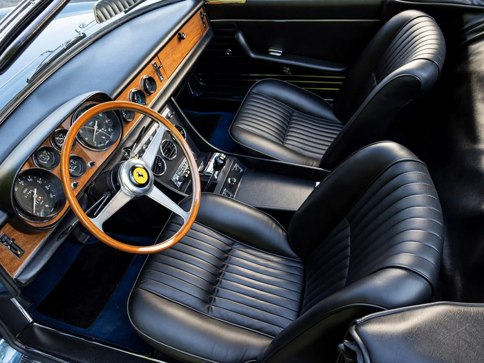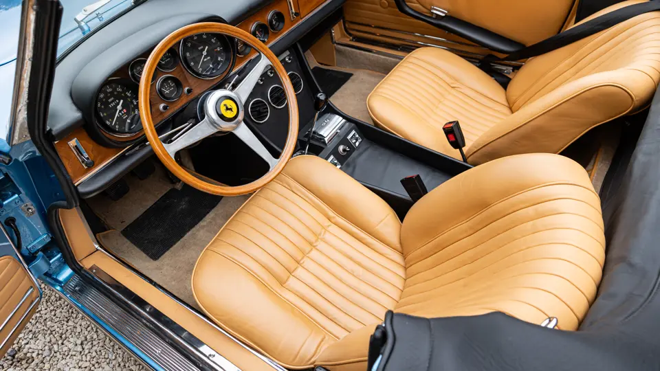 12253 : 1969, 365 GT/S Spider, 6e/20, boîte de vitesses n°79, Azzuro, cuir Nero.