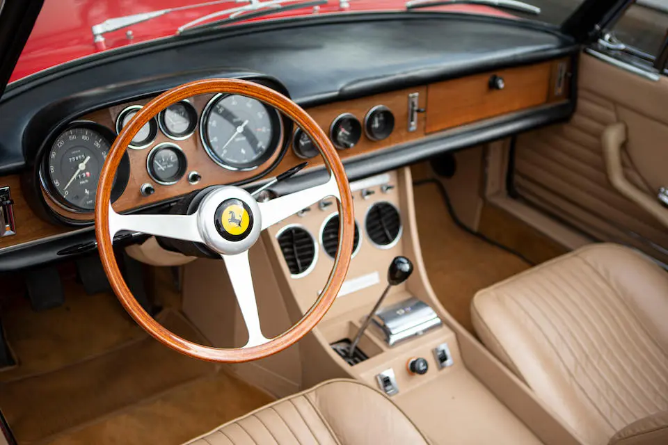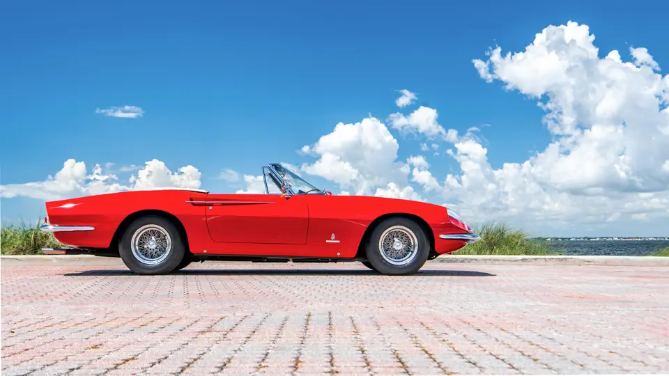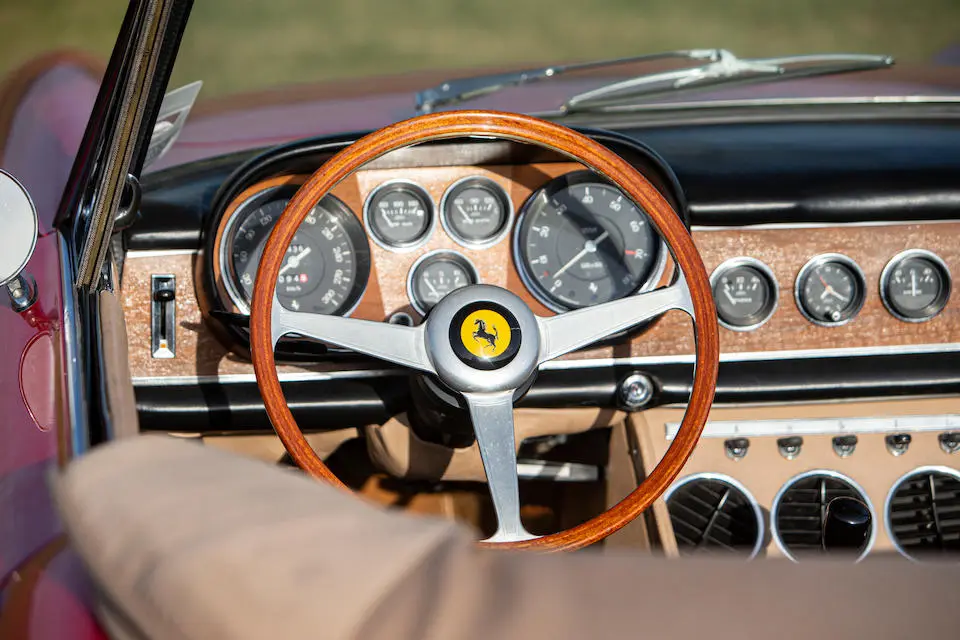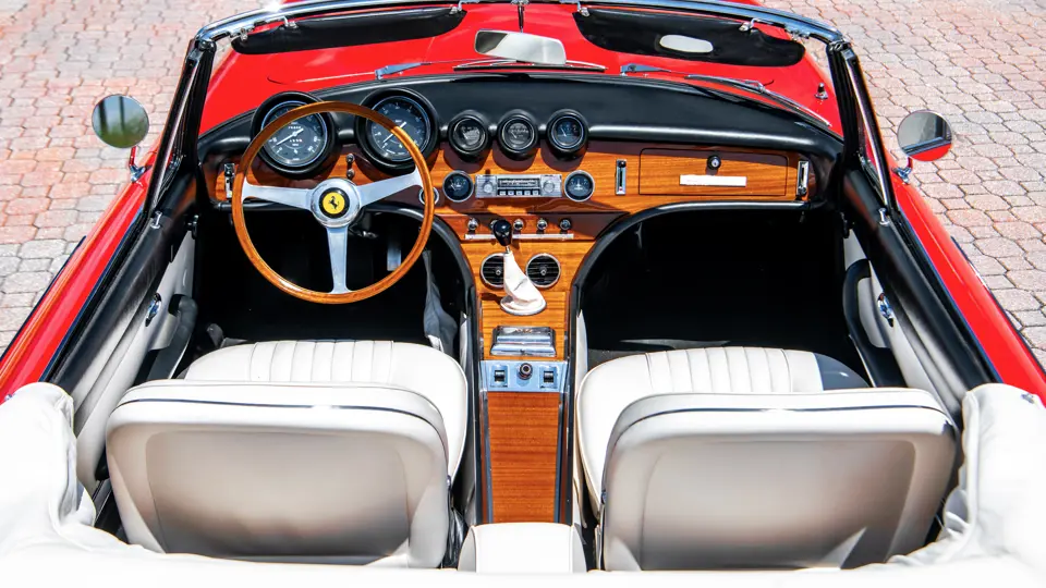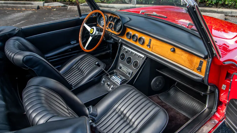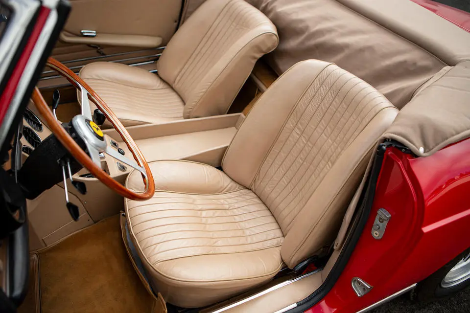 9513 : 04/1967, 330 GT/Spider (caisse Pininfarina CO154), moteur 9513 (2382), radio Blaupunkt, Rosso Cina, cuir beige.