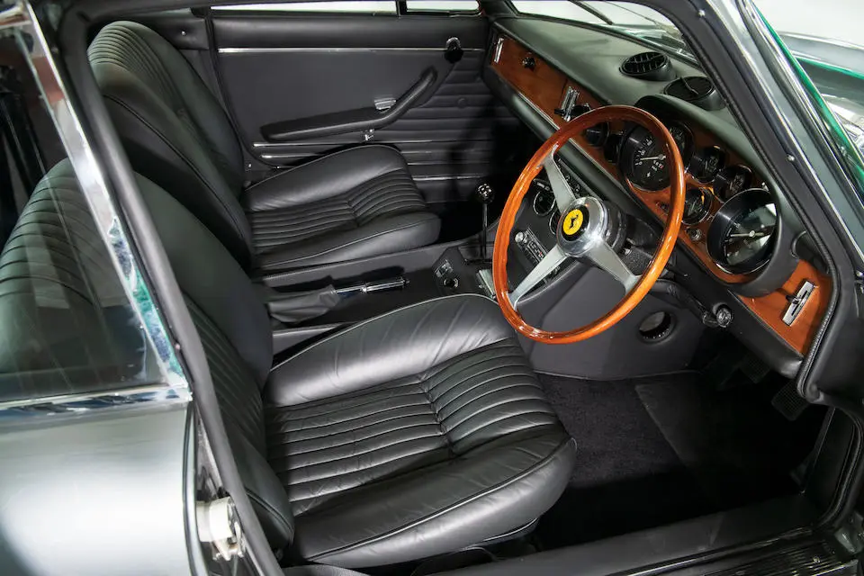 10845 : 1967, 330 GTS, hardtop, 1 seul radiateur d’huile, jantes à rayons Borrani 14″, Grigio Argento, cuir Nero Franzi.