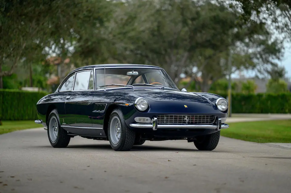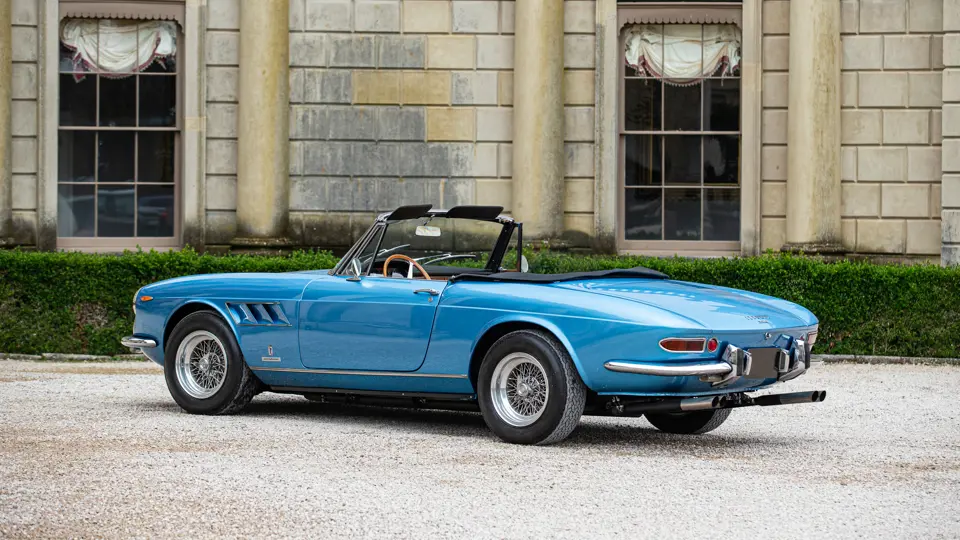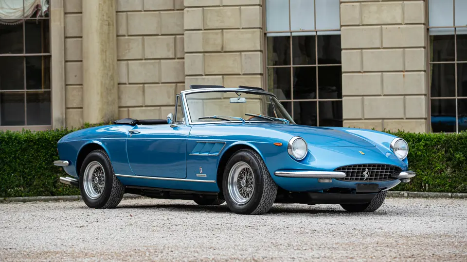11021 : 1968, 330 GTS, Bleu Ribot, cuir noir, hardtop, climatisation, jantes à rayons Borrani.