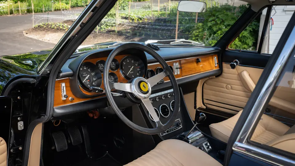 10883 : 02/1968, 330 GTS, Blu Scurro, capote noire, cuir Champagne.