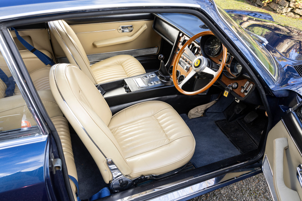 12747 : 1969, 365 GTC, CAD (1/22), compteur en km/h, Azzuro Metallizzato, cuir Nero.