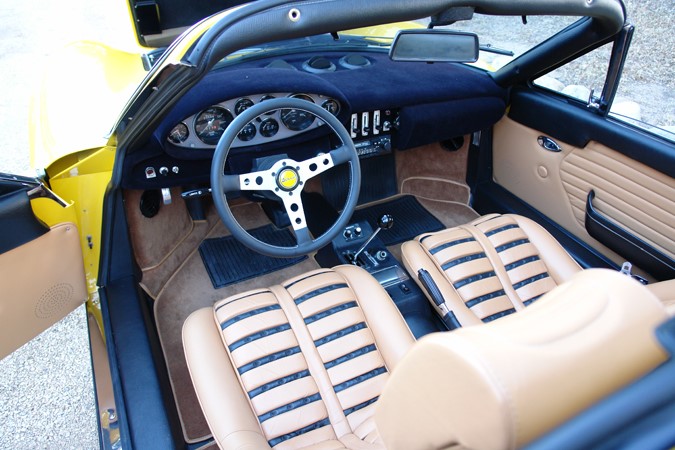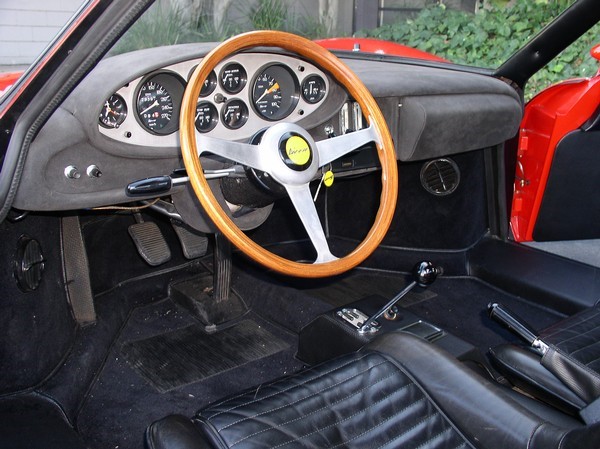 La voiture arbore des logos Dino, on ne trouve aucune trace du nom de Ferrari, il s’agit néanmoins de la première voiture de tourisme à moteur central fabriquée à Maranello.