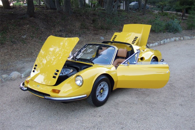 1969 : Présentation de la 246 GT au Salon de Genève (CH) : augmentation de l’alésage et de la course : 92,5×60, 2418 cm3 comprimé à 9,0:1. 195 chevaux DIN à 7600 tours, 23 Mkg à 5500 tours. Moteur réalisé en fonte avec culasses aluminium, nouveaux poussoirs et tendeurs de chaîne de distribution. Nouveaux carburateurs Weber 40 DCNF/7.