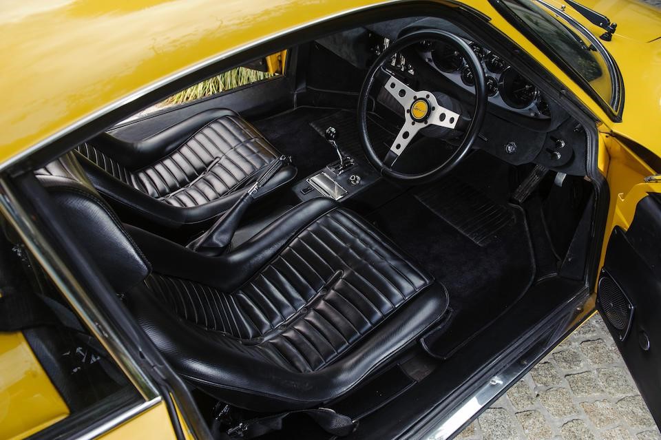 7034 : 1973, 246 GTS, Giallo Fly, Cuir noir, vitres électriques, intérieur Daytona.