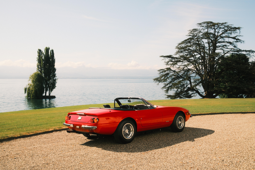 13637 : 1970, 365 GTS/4 Spider, 1er spider, rouge, roues fil Borrani.