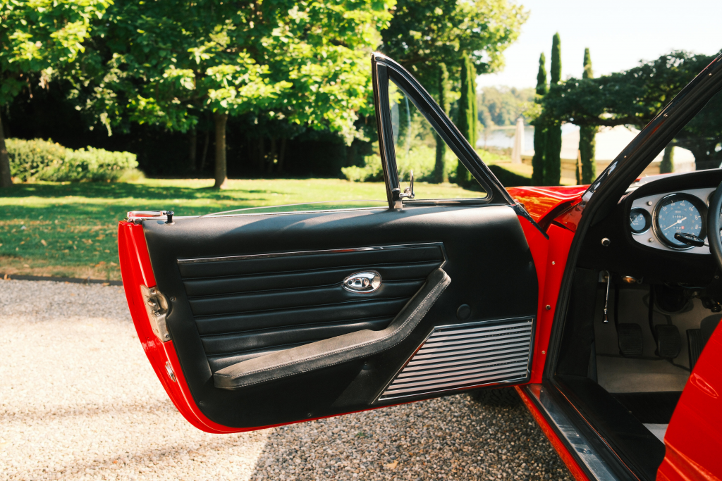 12653 : 06/1969, Berlinette, caisse aluminium par Scaglietti (n°32), moteur B 18, boîte de vitesses n°32, la seule caisse aluminium de tourisme, phares sous globes plexiglas, vitres électriques, Rosso Chiaro (20-R-190), cuir Nero (VM 8500).