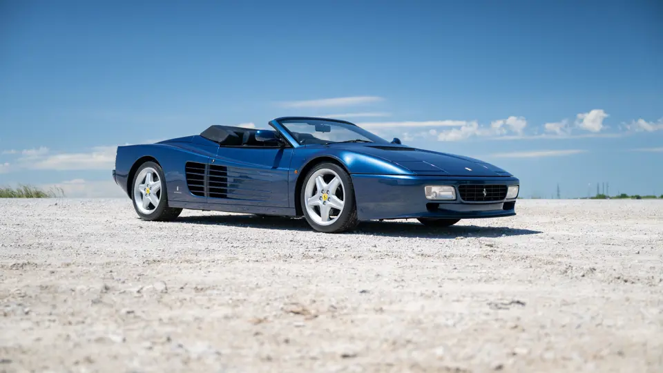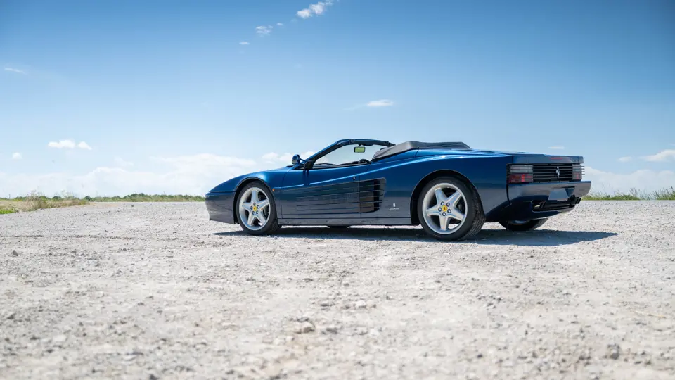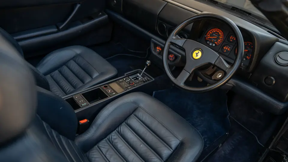 ZFFLA4C000097310 : 06/1993, 512 TR Spider, 1/3 de ce type par Pininfarina, CAD, moteur 35505, boîte de vitesses 146785, Blu Cobalto, cuir Blu Scuro, moquette bleue, capote bleue.