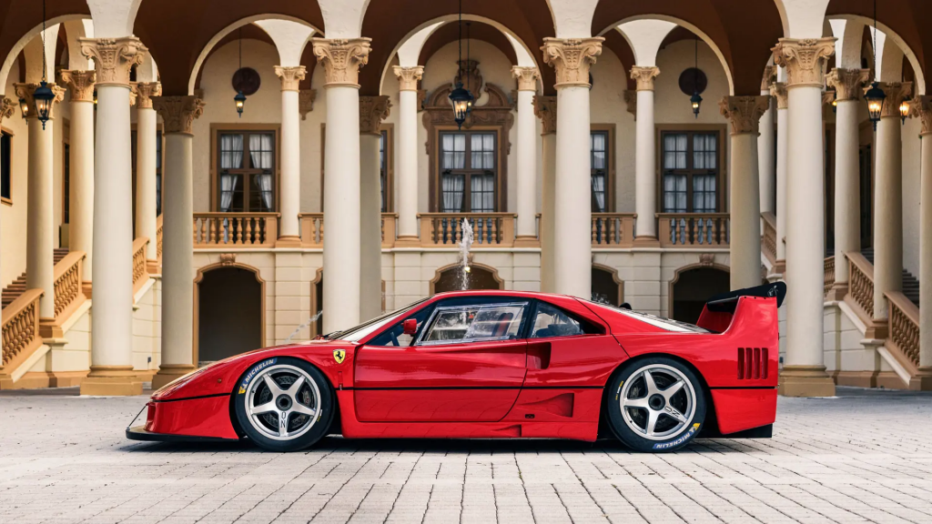 79883 : 1989, F40, Embrayage électronique Valéo permettant le passage des rapports en moins de 100 millisecondes, boîtier fixé sur la cloison pare-feu derrière le siège passager, Rosso corsa, sièges noirs avec support lombaire rouge sur le siège conducteur, allume-cigares, carnet d’entretien en cuir avec initiales G.A.