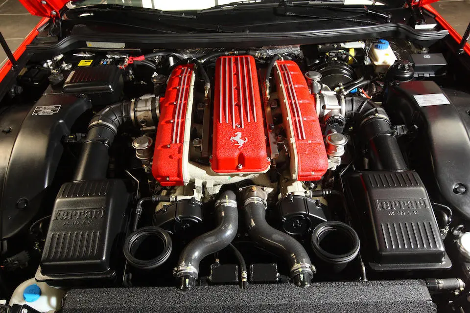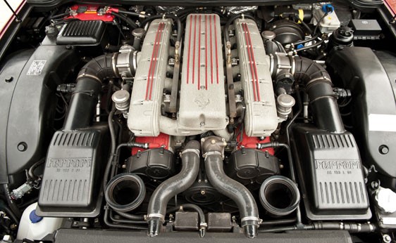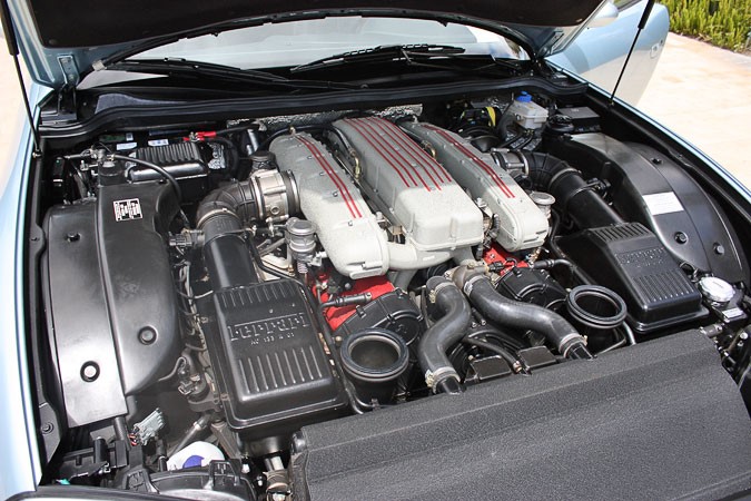 Cylindrée comme la 456 GT avec fonderie commune mais usinage différent : nouveaux pistons forgés en aluminium (Mahle), bielles en titane permettant l’allègement des contrepoids d’équilibrage du vilebrequin et favorisant la rapidité de la réponse, chemises humides en aluminium rapportées, parois traitées au Nikasil.