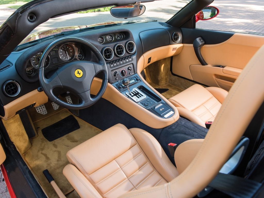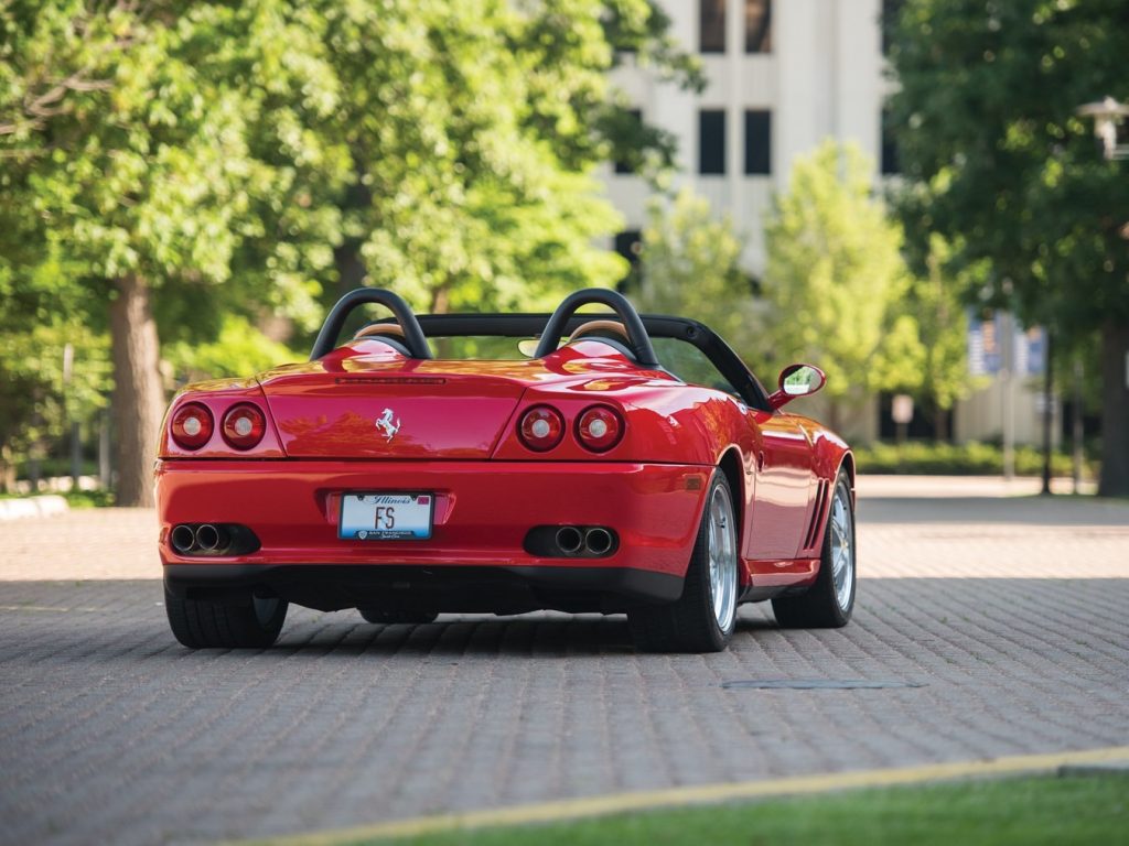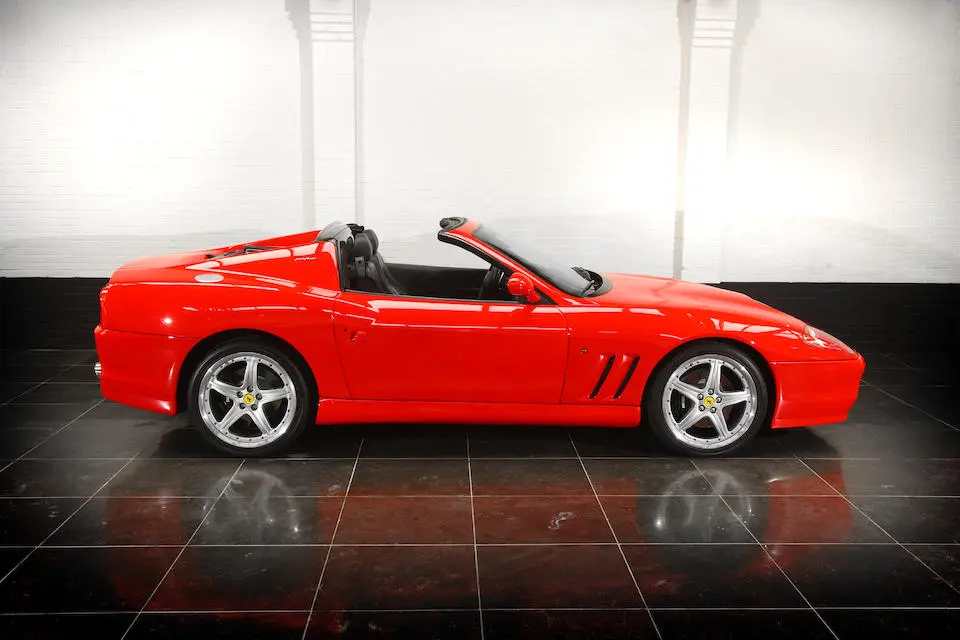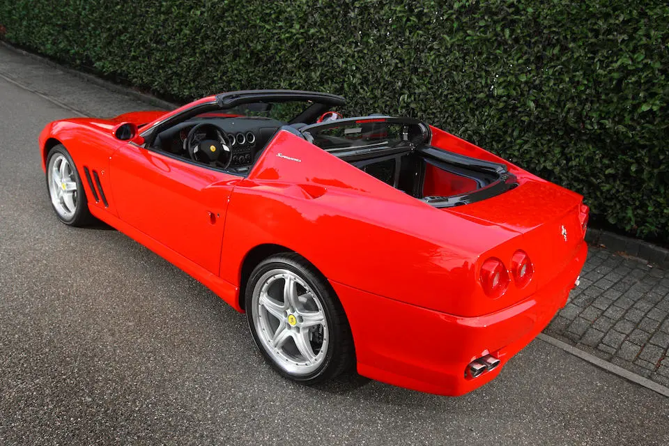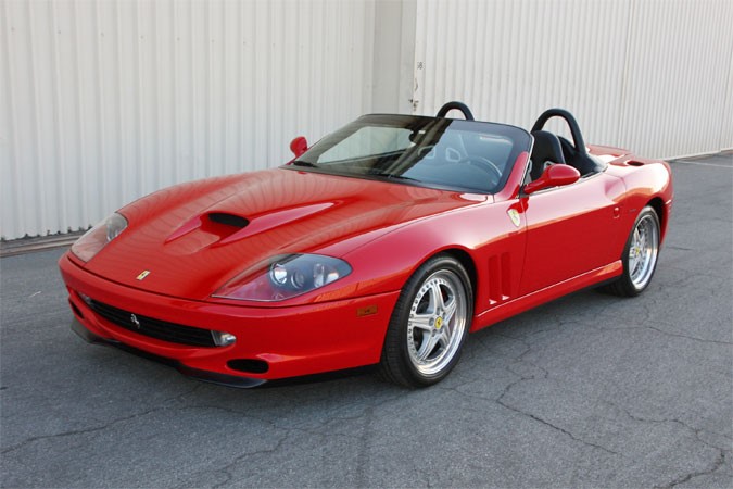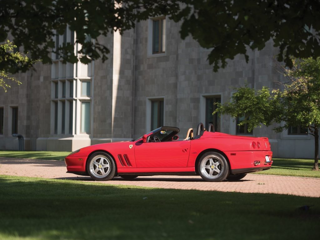 10/2000 : Salon de Paris (FRA) : Présentation de la 550 Barchetta. Voiture développée suite à un accord entre Luca de Montezemolo et Pininfarina pour commémorer les 70 ans de la carrosserie. On retient une caisse de barchetta qui permet d’obtenir un poids identique au coupé malgré les renforts du châssis. Le pare-brise abaissé de 100mm est redessiné et incorpore une barre de renfort. La barchetta reçoit de nouvelles jantes en aluminium forgé en 3 parties, une trappe de réservoir en aluminium et un arrière redessiné autorisant plus de place pour les bagages. La voiture est une stricte 2 places, avec sièges baquets et capote souple (utilisable en dessous de 110 km/h).