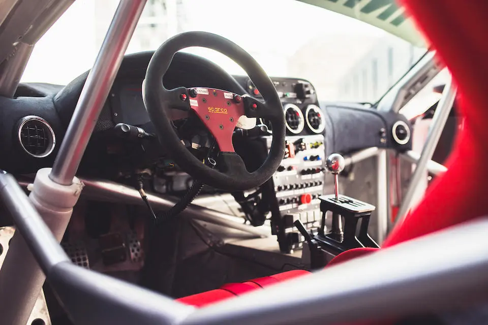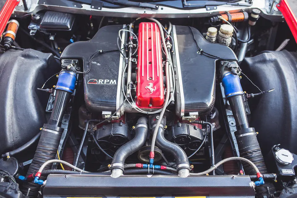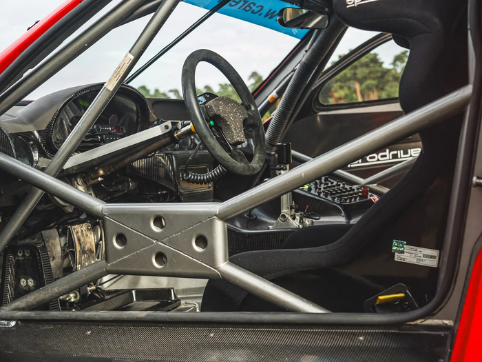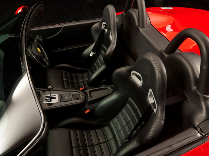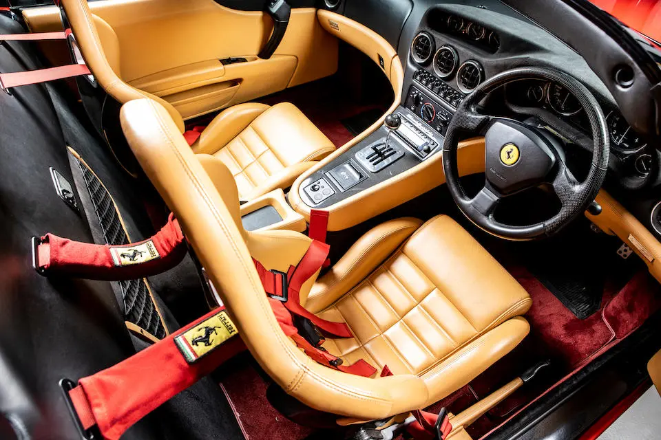 F133-GT-1436558 : 1996, 550 Sperimentale, empattement rallongé de 20 cm, 2 traverses supplémentaires (rigidité augmentée de 10%), prise d’air sur aile ARD pour créer une dépression sous la voiture destinée à refroidir le réservoir d’essence (augmente puissance et diminue émissions polluantes), échappement latéral de plus gros diamètre, ailes avant et capot plus long, ensemble pédalier-volant entièrement réglable, individuellement pour chaque pédale, siège conducteur fixe, Rosso Corsa.