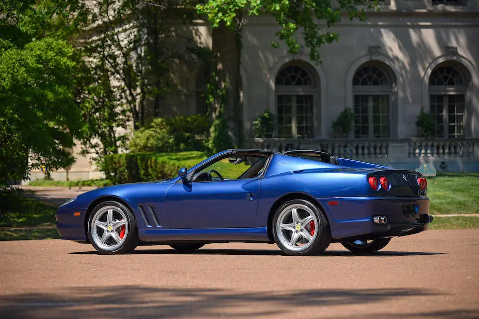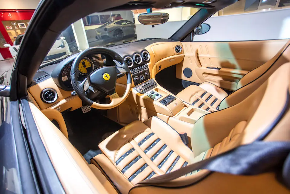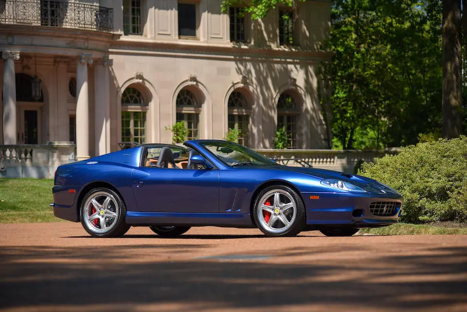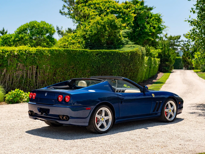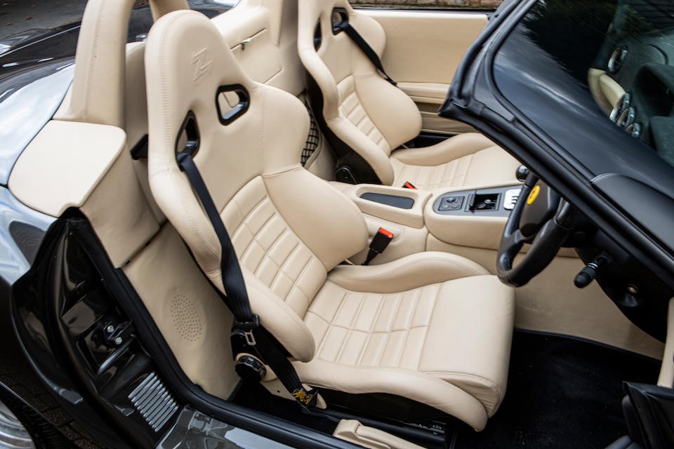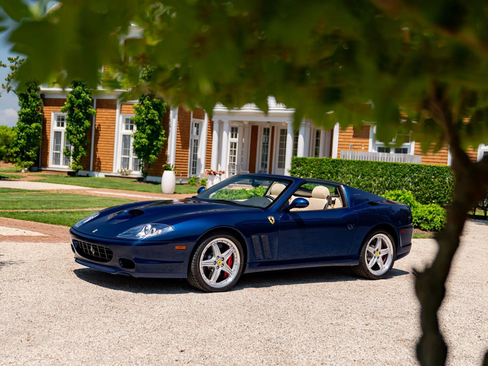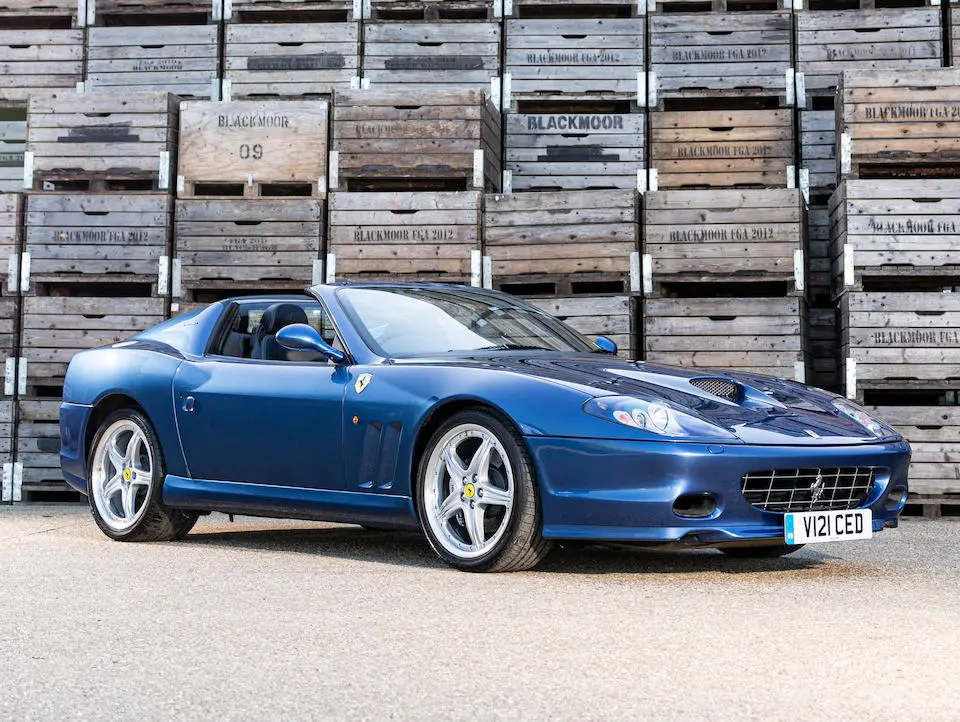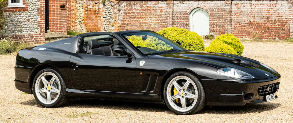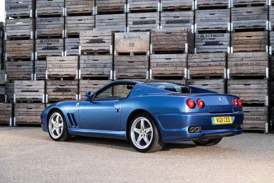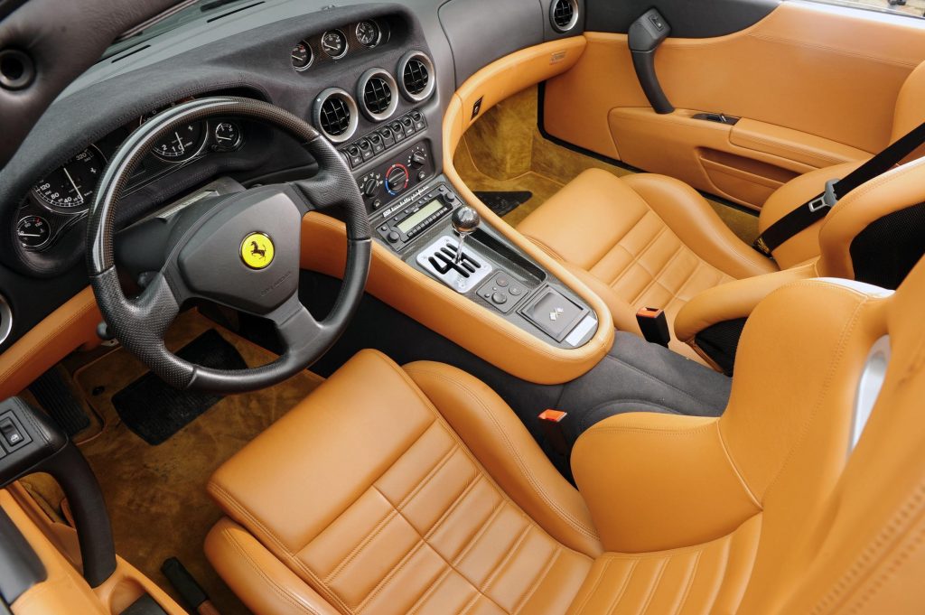 ZFFGT61A650144855 : 2005, 575 Super America, boîte de vitesses manuelle, écussons Scuderia sur les ailes, équipement hifi avec chargeur 6 disques, inserts carbone dans l’habitacle, volant Blu Scurro, Blu Tour de France, cuir crème.