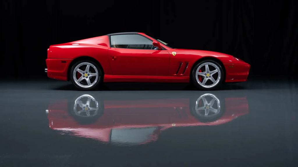 ZFFGT61B000143930 : 2005, 575 Super America, boîte de vitesses séquentielle, jantes alliage léger BBS, emblèmes sur les ailes, Rosso Corsa, cuir beige.