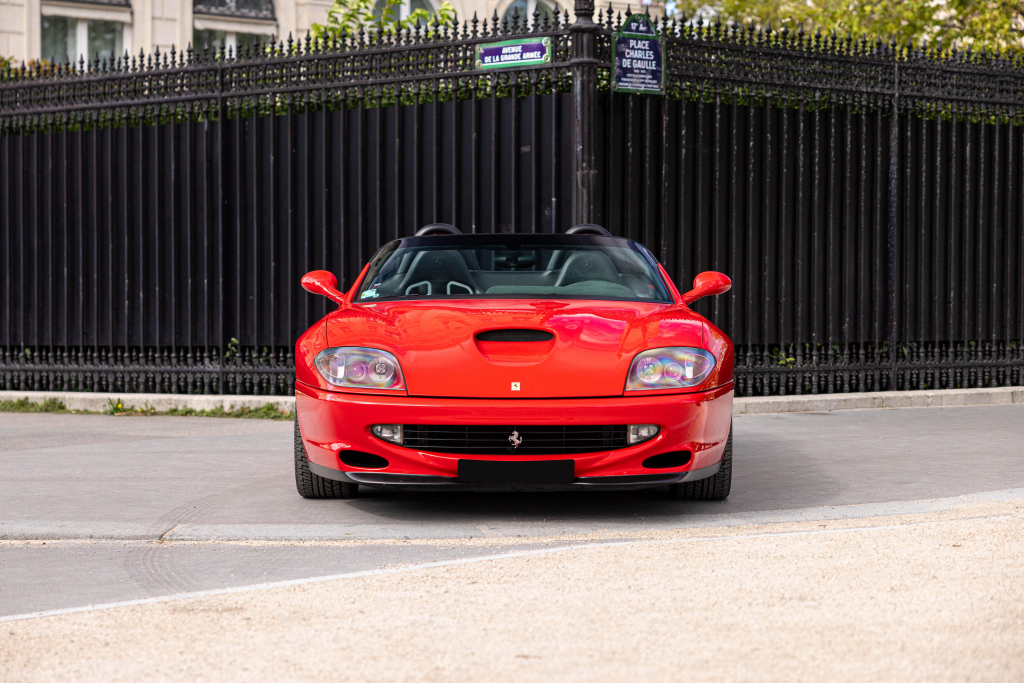 ZFFGT61AX50145099 : 2005, 575 Super America, étriers Rosso Scuderia, roue de secours galette, écusson Scuderia sur les ailes, garnitures carbone, instrumentation à fond rouge, sièges Daytona à inserts noirs, Rosso Scuderia, cuir Cuoio.