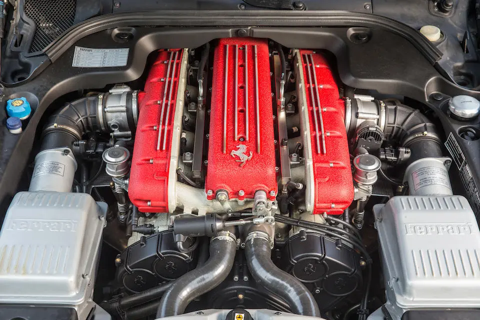 12 cylindres en V en position avant ouvert à 65°, entièrement en alliage léger équipant également la 575 Superamerica (Tipo F133F).
