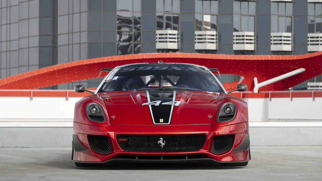 ZFF69PXX000175808 : 2010, 599XX Evo., Rosso Fuoco, toit et aileron arrière gris, bande noire, intérieur noir.