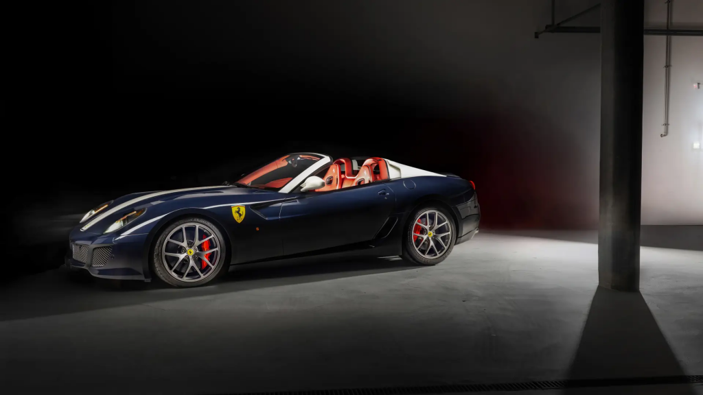ZFF72RDB000186277 : 2012, 599 SA Aperta, dernière de la série, étriers rouges, échappemnt sport, jeu de bagages spécifiques par Hermès, sièges Recaro en fibre de carbone avec Cavallino brodé dans les appuie-têtes, aide au parking, GPS avec tracking par satellite, volant rouge et noir, compteur jaune, garnitures de tableau de bord argent, console laquée noir, Rosso Corsa, cuir Nero à passepoils rouges, capote noire.