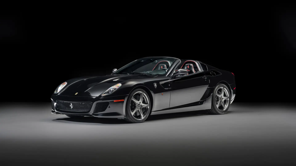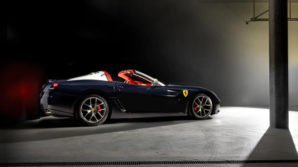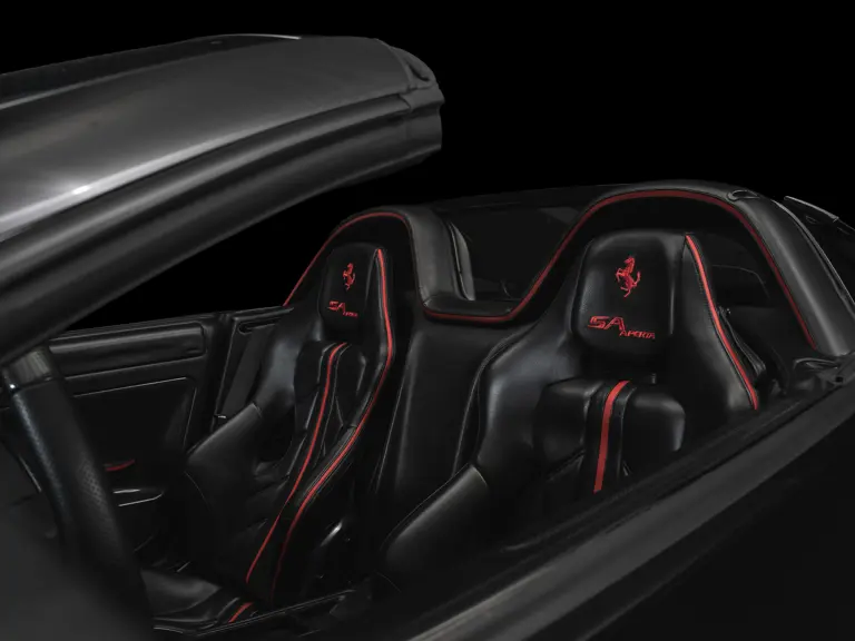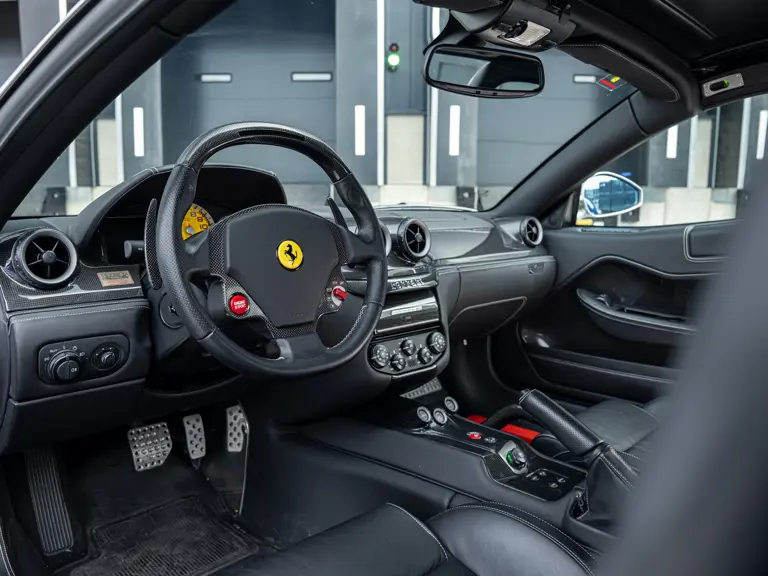 ZFF72RHA1B0180054 : 2011, 599 SA Aperta, la 1ère aux normes US, 1/80, étriers rouges, écusson Scuderia sur les ailes, sièges baquet à coque en carbone et garnitures Daytona, inserts en fibre de carbone poli, Nero, cuir Nero.