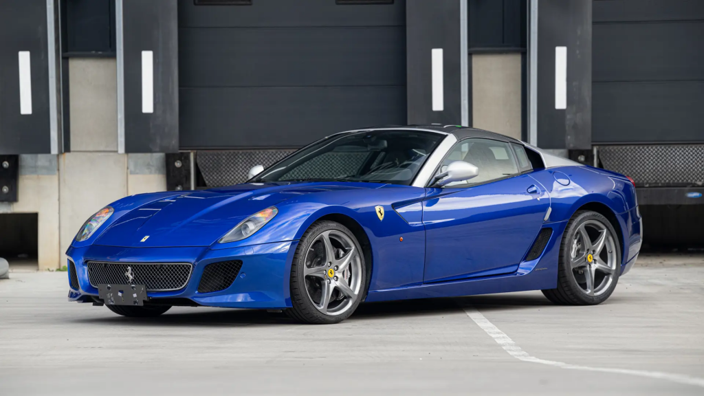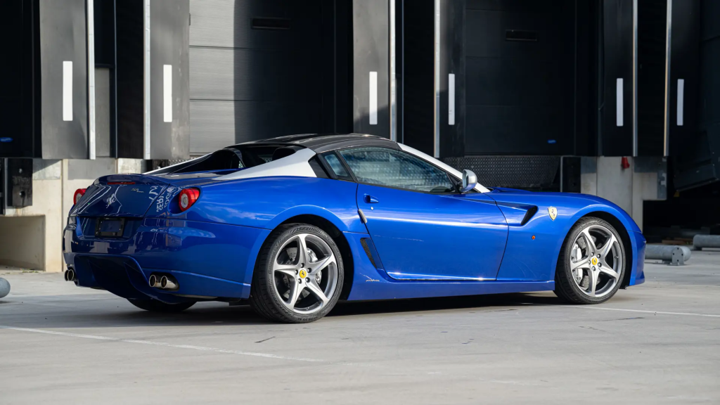 Recarrossée en 599 GT/Z Nibbio Coupé par Zagato, jantes SA Aperta, Bleu foncé, toit blanc, cuir bleu foncé/bleu clair.