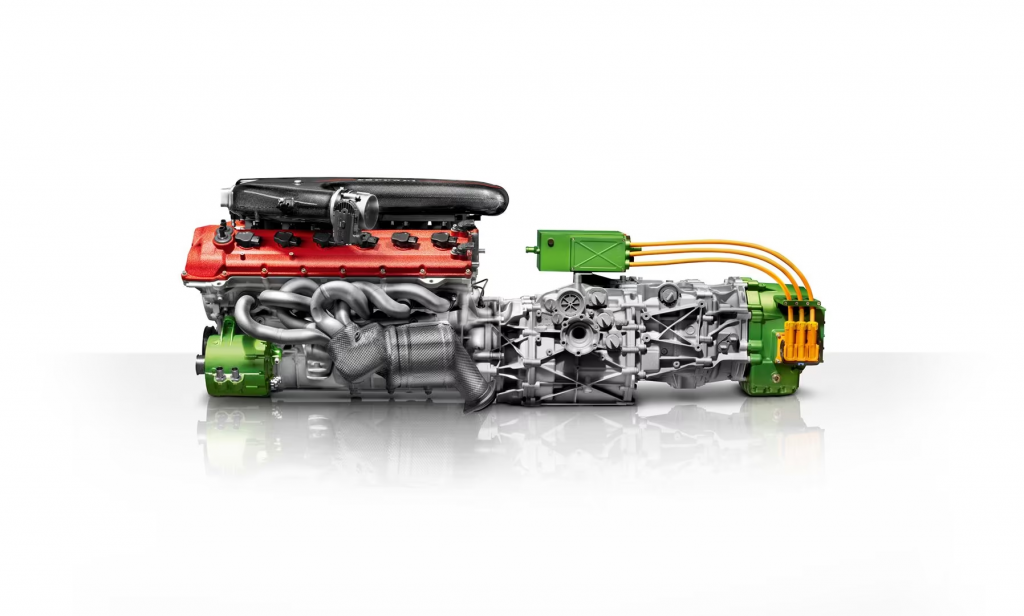 Ce bloc thermique est complété par l’Hybrid Kinetic Recovery System (KERS) utilisé sur les Formules 1 de la marque en 2009. Cette technologie permet d’accroître la puissance tout en diminuant les émissions polluantes. Le KERS est constitué de 2 moteurs électriques fournis par Magnetti Marelli assurant la puissance et alimentant les auxiliaires de la voiture. Le poids de ce système, au départ fixé à 100 kg est finalement rabaissé à 50 et le supplément de puissance de 163 chevaux (120 Kw) avec un couple augmenté de 200 Nm. Les moteurs électriques sont surtout opérationnels à bas régime. Le système Hy-Kers est contrôlé par l’unité de puissance hybride composé de 2 onduleurs et 2 convertisseurs CC-CC chargée de gérer la puissance délivrée par les moteurs.