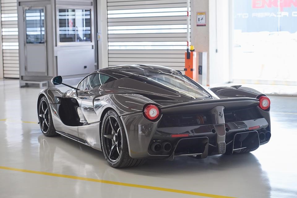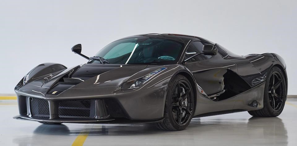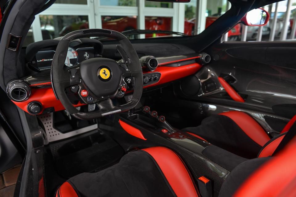 ZFF76ZHT4F0214727 : 2015, LaFerrari, échappement sport, jantes noires vernies, Gunmetal Grey Metallic et noir, intérieur noir à surpiqûres rouges, inserts alcantara et carbone.