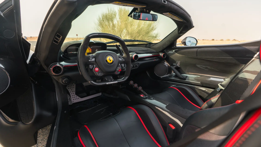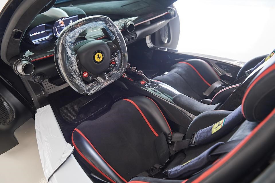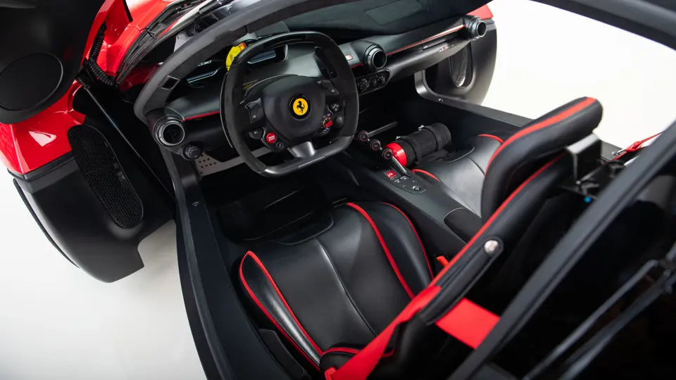 ZFF86ZHA0H0232856 : 2017, LaFerrari Aperta, Package extérieur carbone, hardtop carbone, Emblèmes brodés dans les appuie-têtes, Nero Daytona Metallizzato, cuir Nero à inserts Rosso.
