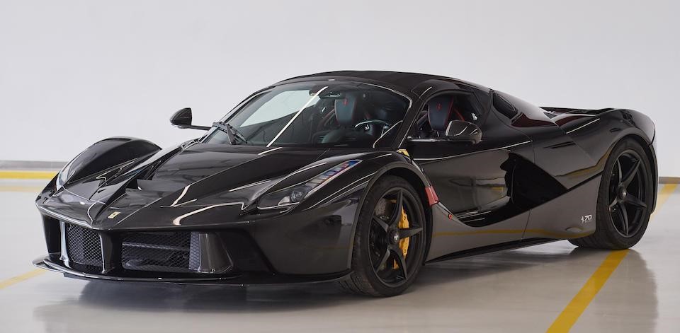 ZFF76ZFA9F0211998 : 2015, LaFerrari, jantes noires, étriers jaunes, embouts d’échappement noirs ; rétroviseurs extérieurs, diffuseurs av./arr., coque de feux antibrouillards carbone, télémétrie avec caméras, sièges confort, Nero, cuir Nero.