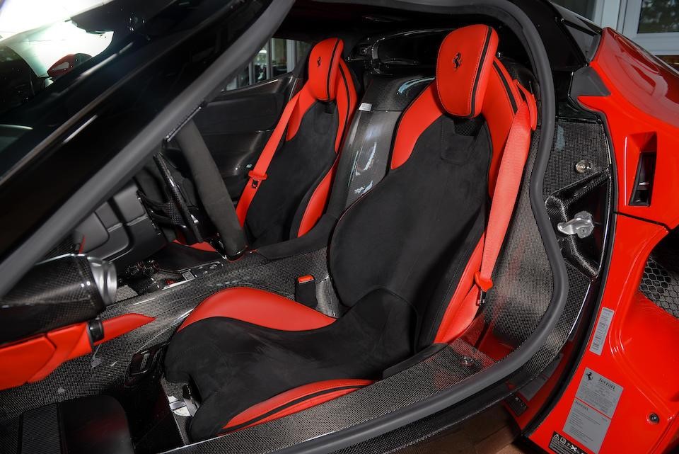 ZFF76ZFA4F0211245 : 2015, LaFerrari, feux antibrouillard en fibre de carbone, montants de rétroviseurs extérieurs en carbone, échappement sport, cavallino brodé sur les appuie-têtes, Rosso Corsa, cuir et alcantara noir et rouge.