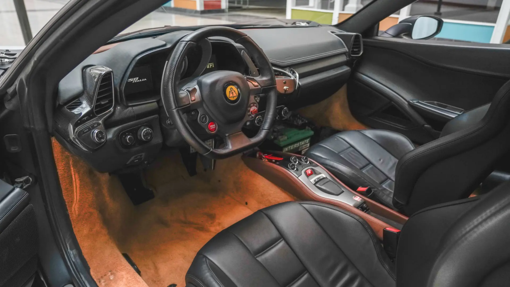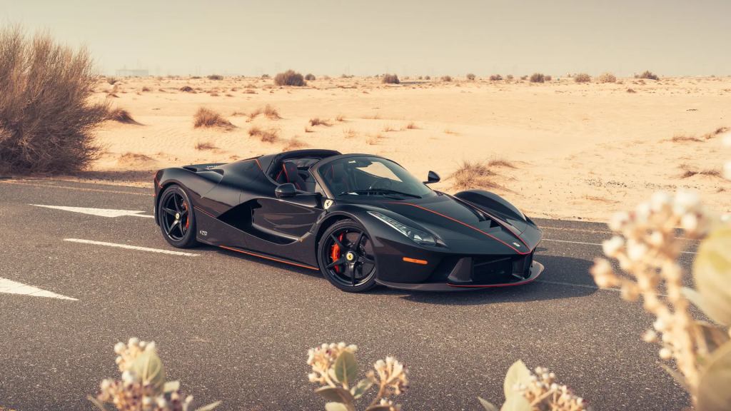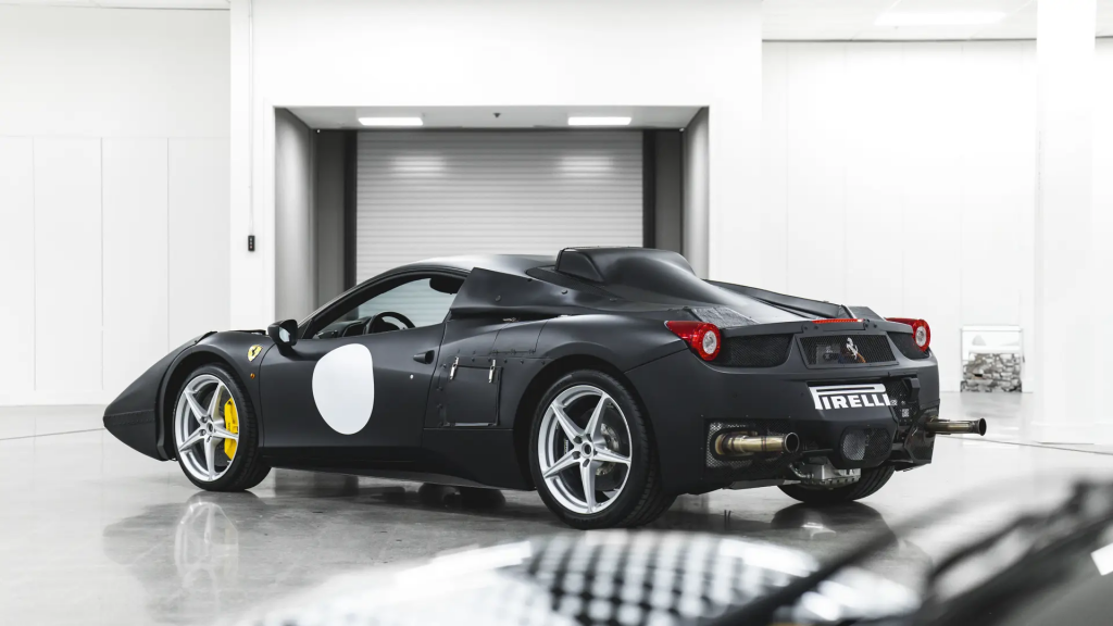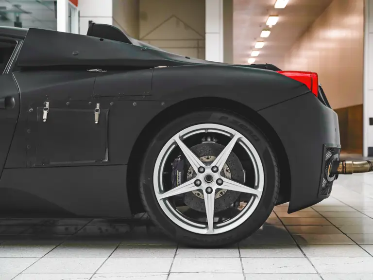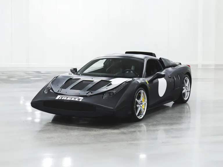 ZFF67NHB000184231 : 2011, LaFerrari, Prototype M4 (F150 Muletto M4); non homologuée pour la route; prise d’air avant agrandie; feux av./arr., rétroviseurs et écussons d’ailes de 458; pas de cabochons de roues; rivets apparents; embouts d’échappements plus longs; poignées d’ouverture de capot moteur latérales; ouïes de refroidissement supplémentaires arrières; intérieur dans le style de la 458; Noir mat, cuir noir, tapis de sol beiges.
