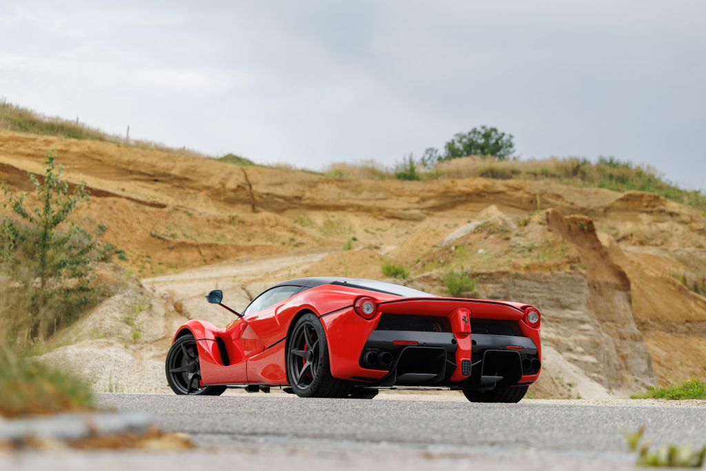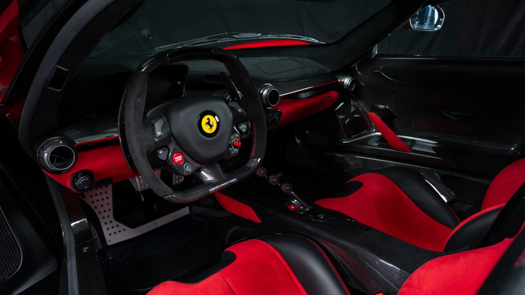 ZFF76ZFA4F0211245 : 2015, LaFerrari, feux antibrouillard en fibre de carbone, montants de rétroviseurs extérieurs en carbone, échappement sport, cavallino brodé sur les appuie-têtes, Rosso Corsa, cuir et alcantara noir et rouge.