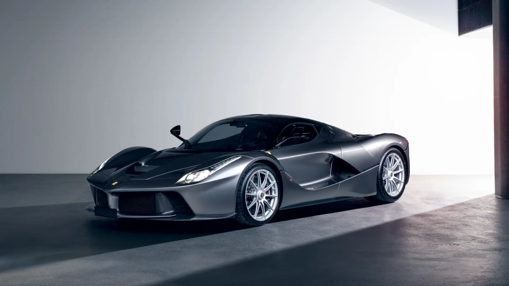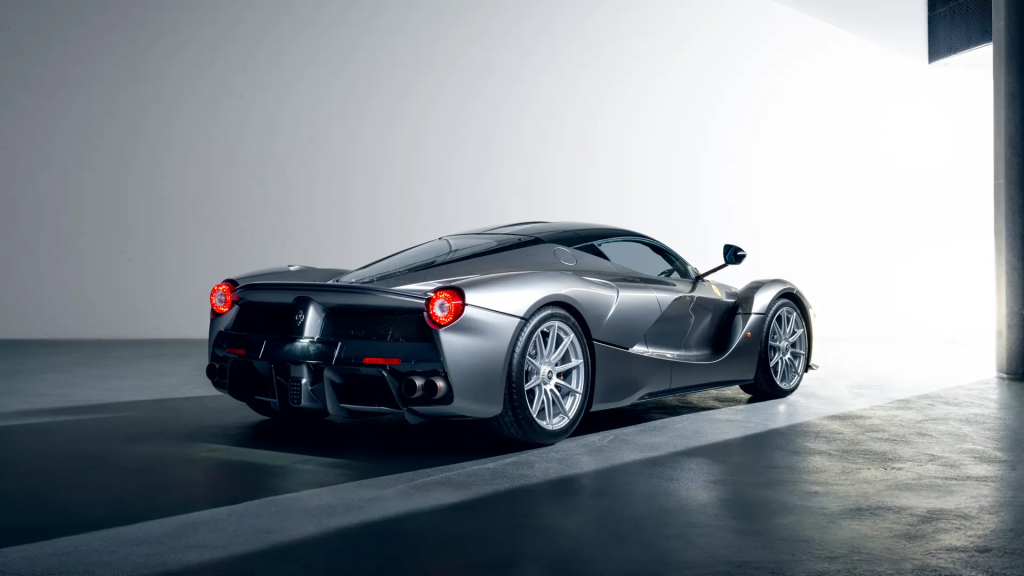ZFF76ZHT4F0214727 : 2015, LaFerrari, échappement sport, jantes noires vernies, Gunmetal Grey Metallic et noir, intérieur noir à surpiqûres rouges, inserts alcantara et carbone.