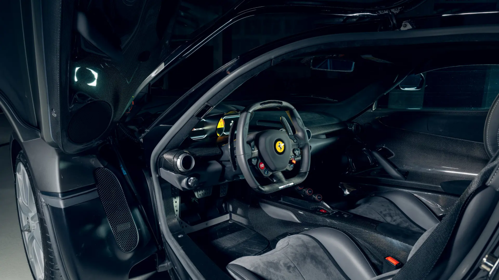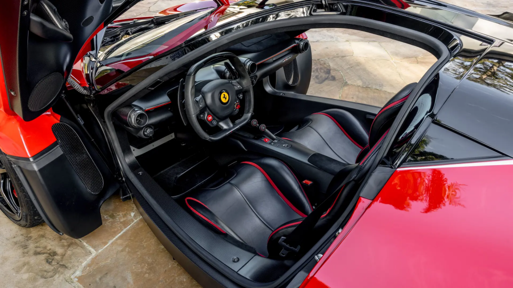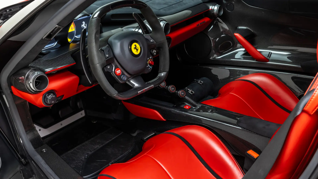 ZFF86ZHA0H0232856 : 2017, LaFerrari Aperta, Package extérieur carbone, hardtop carbone, Emblèmes brodés dans les appuie-têtes, Nero Daytona Metallizzato, cuir Nero à inserts Rosso.