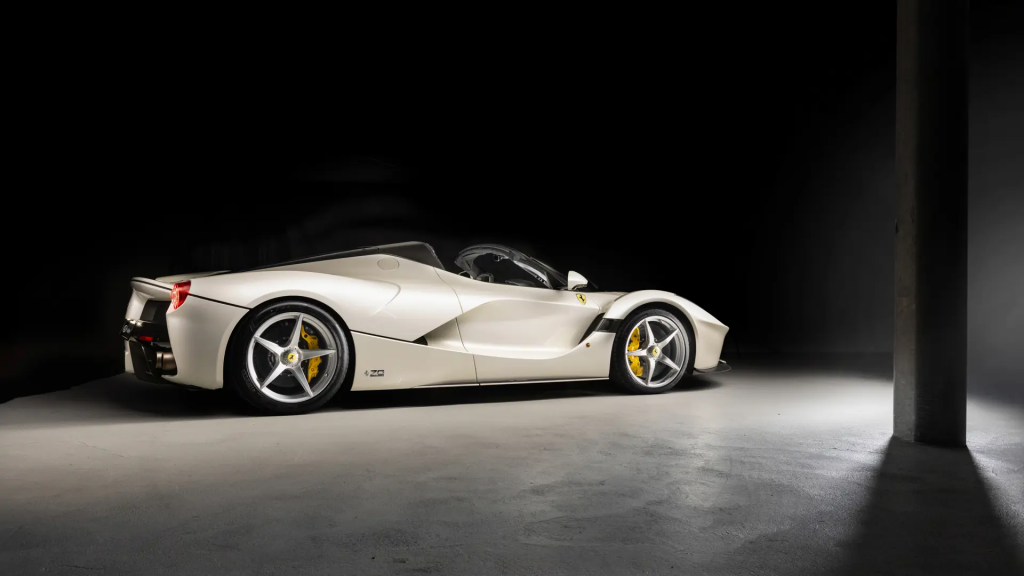 ZFF86ZHAXH0227678 : 2017, LaFerrari Aperta, éléments de carrosserie en carbone, étriers de frein jaunes, embouts d’échappement racing, jantes noires 20 pouces en acier forgé, garde au sol réglable à l’avant, sièges plus larges, cavallino brodé sur les appuie-têtes, Giallo Triplo Strato, cuir noir avec inserts jaunes.