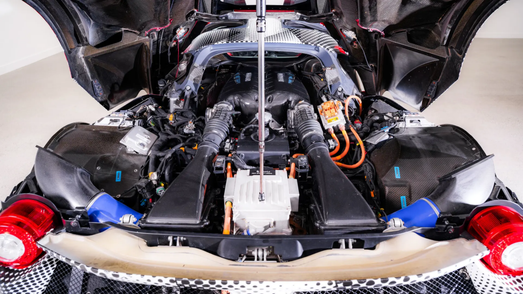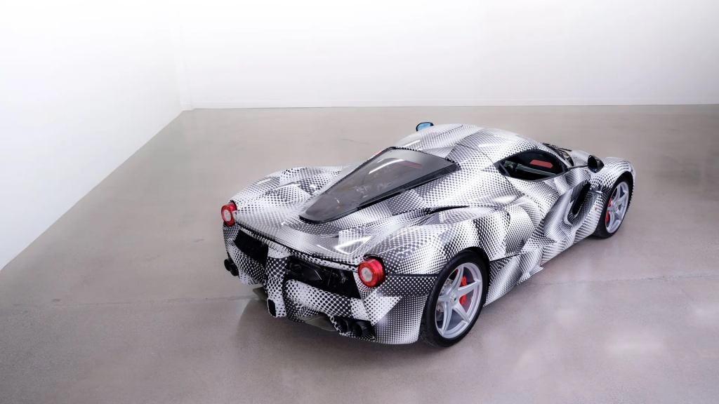 ZFF67NHB000184231 : 2011, LaFerrari, Prototype M4 (F150 Muletto M4); non homologuée pour la route; prise d’air avant agrandie; feux av./arr., rétroviseurs et écussons d’ailes de 458; pas de cabochons de roues; rivets apparents; embouts d’échappements plus longs; poignées d’ouverture de capot moteur latérales; ouïes de refroidissement supplémentaires arrières; intérieur dans le style de la 458; Noir mat, cuir noir, tapis de sol beiges.