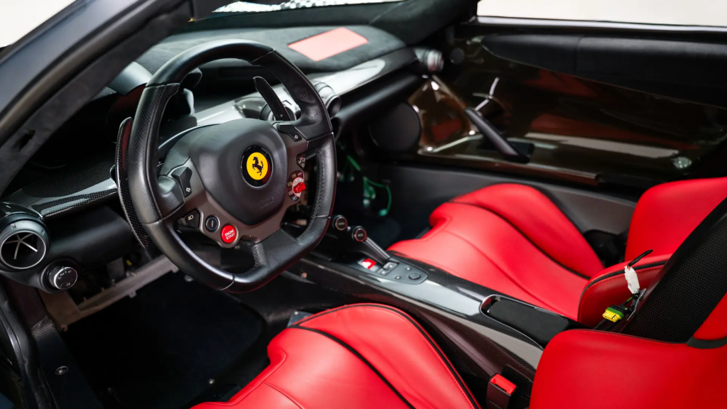 ZFF67NHB000194528 : 2012, LaFerrari Prototype F150-P2, non homologable, moteur EV 103 atmosphérique sans KERS, boîte de vitesses 022, équipement électrique au niveau au niveau du passager, volant non standard, Rosso et carbone brut, cuir Rosso.