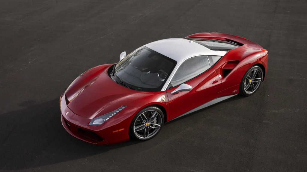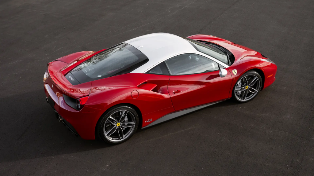 La nouvelle 488 succède à la 458 GT et reprend une appellation faisant référence à la cylindrée unitaire : 488 cm3, soit 3,9 l alors que l’appellation 458 fait référence à une cylindrée de 4,5 l pour un bloc 8 cylindres. Il s’agit aussi de la première Ferrari à moteur V8 double turbo depuis la 288 GTO.