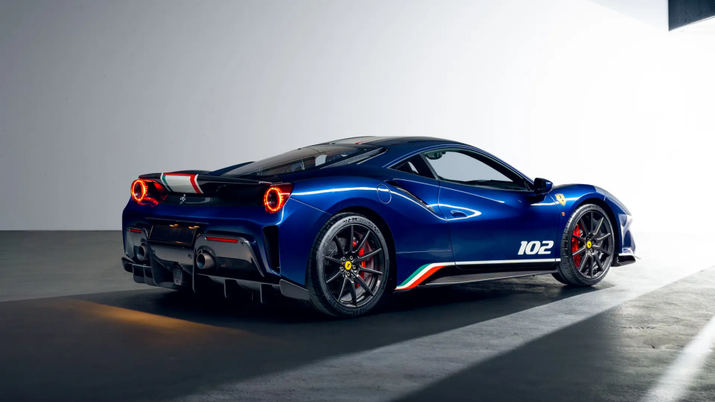 ZFF90HLA8L0250456 : 10/2019, 488 Pista Piloti Ferrari, n° course 69, Blu Tour de France,